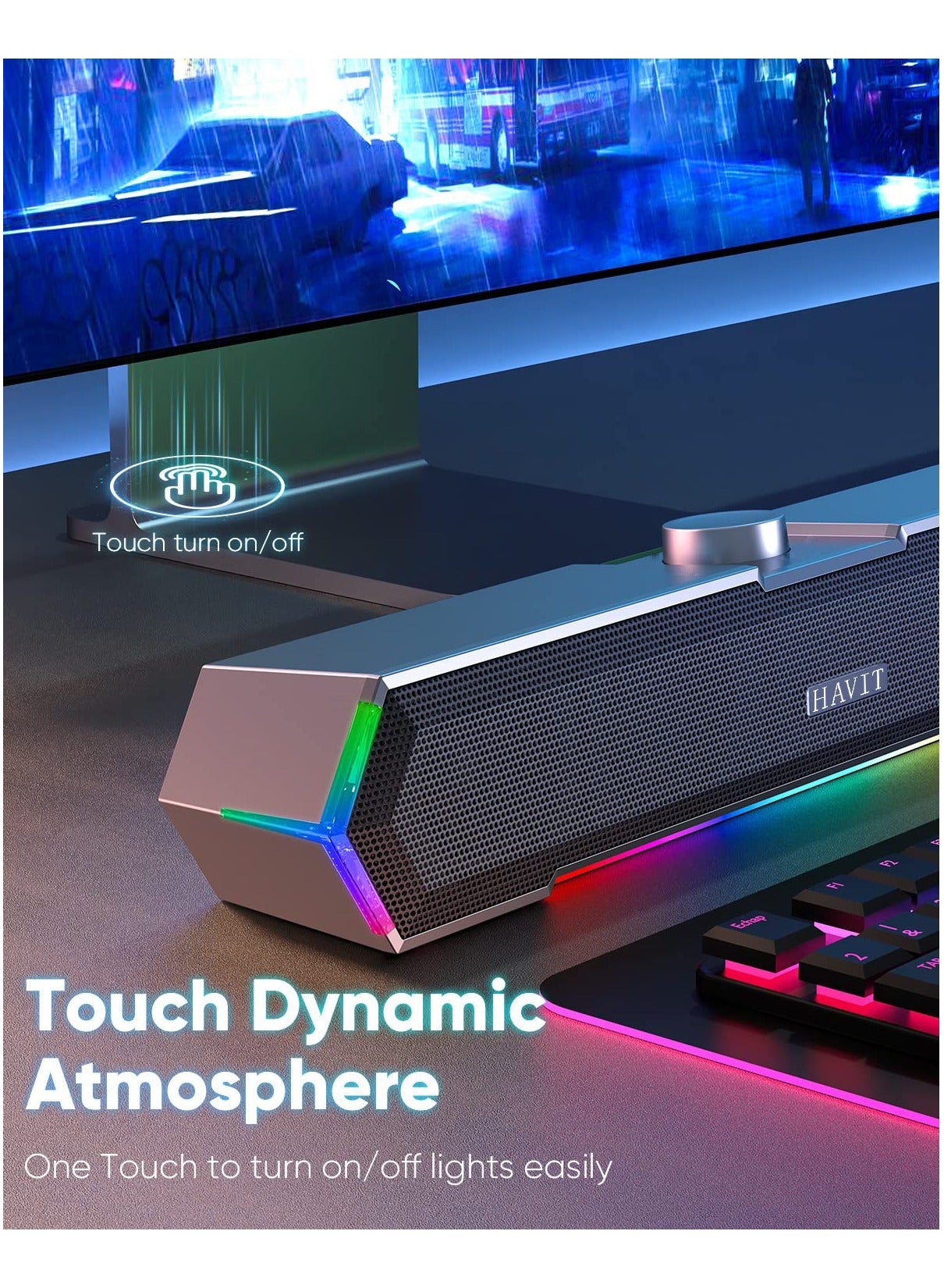 HAVIT M19 PC SOUNDBAR RGB SURROUND 3.5MM JACK + USB + BLUTOOTH