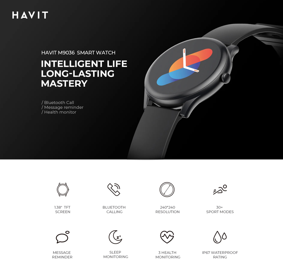 HAVIT M9036 SMART WATCH SIMPLE AMOLED SCREEN WITH PHONE APP